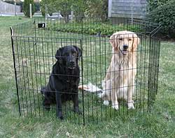 Exercise Pens provide the freedom to move with the security and comfort of a crate. This sturdy, 8 panel, solid hinged construction Exercise Pen is perfect for keeping your pet contained while still giving him/her room to move about and play. Our Exercise Pen is ideal for indoor or outdoor use, sets up quickly, folds flat for easy storage. Long lasting Black coated finish. Available in two heights: 24" or 30". Each panel is 24" wide yielding a perimeter of 192".